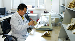 設計院配備了完善的選礦試驗設備和巖礦鑒定設備,下設六間研究室,可進行浸出上百種礦物試驗研究,分別為巖礦鑒定室、化驗室、選冶研究室、生物氧化室、重選實驗室、磁選實驗室。目前,巖礦鑒定室可進行光(薄)片的鏡下鑒定工作,查明礦石的物質組成,礦物形態及嵌布特征;化驗室擁有示波極譜儀、可見光分光光度計、碳硫分析等儀器,可進行多元素、物相等分析檢測工作,檢測水平處于國內領先水平。各研究室均由專家帶隊,正是這些技術員們一遍遍的試驗研究,為金鵬的科技水平提高,做出了極大的貢獻。