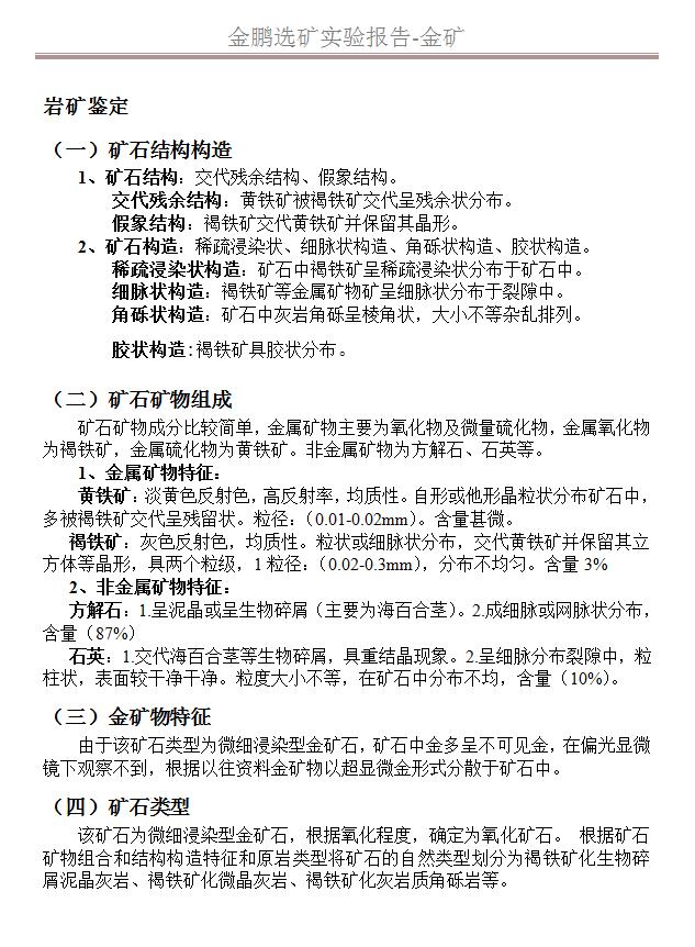對原礦性質的測定包括兩個部分:原礦礦物組成的確定和原礦化學性質測定。